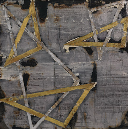 The geometric paintings Seth creates are a departure from his usual paintings. He creates them by visualizing patterns and taping off sections on oversized canvases. Working with precision, he applies layers of color within the taped-off areas, resulting in bold and vibrant compositions.